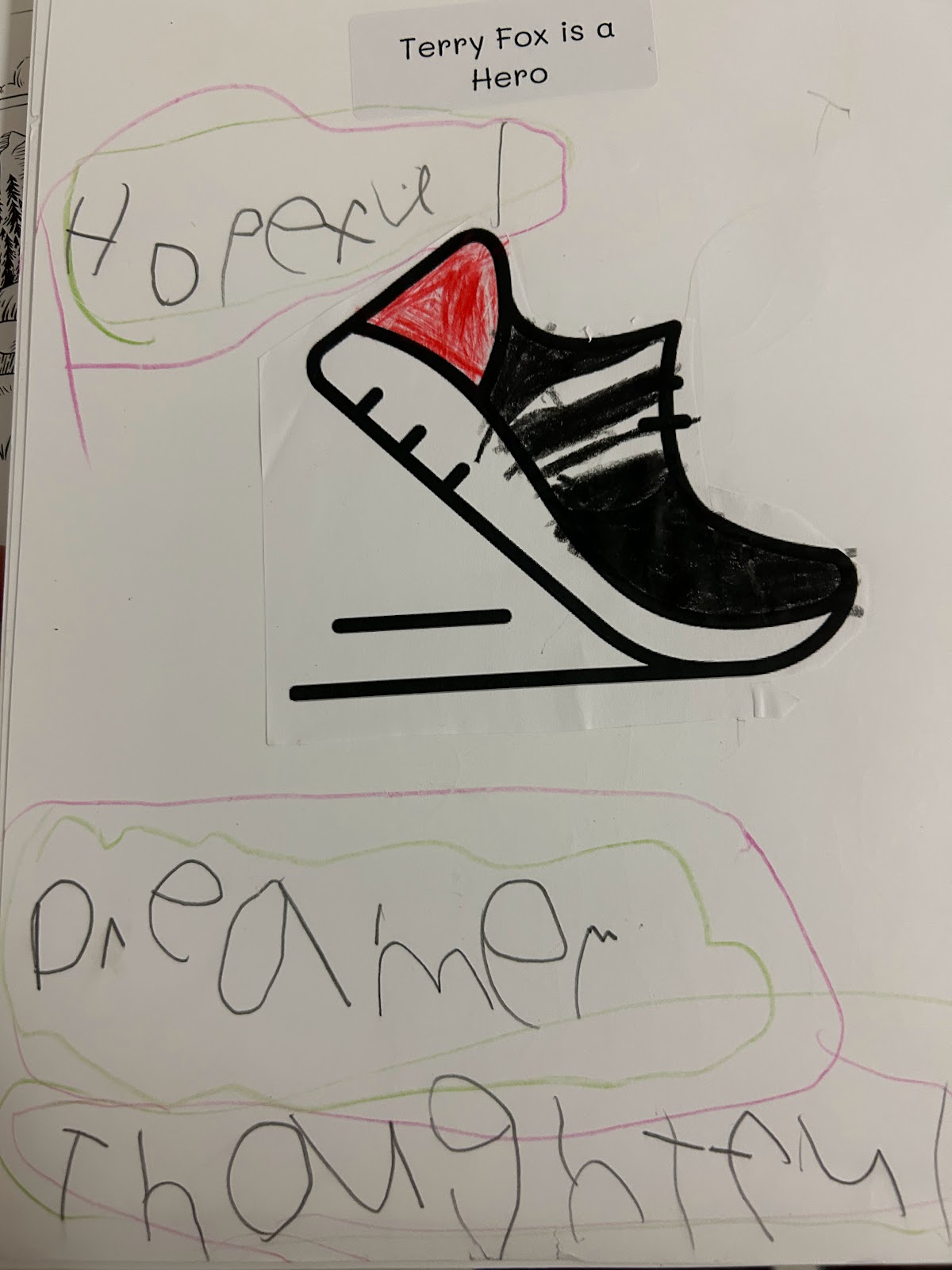 In our school community, we have been learning about Terry Fox, a Canadian Hero. Our grade one community began this work by first looking at fictional superheroes, what defines a superhero, and what superpowers each student would like to have. We connected the idea of a superhero by learning about Terry’s life growing up as an average child in Canada and his ability to do great things. Through stories and videos, students learned about Terry’s life as a child, the discovery and his battle with cancer, and his goal to raise $1 for every Canadian to fund cancer research. Students in our classroom community then focused on the contributions of Terry Fox and the power that one individual has to make a difference and create change for others. We concluded our work by completing the Terry Fox run with our Andrew Sibbald school community.